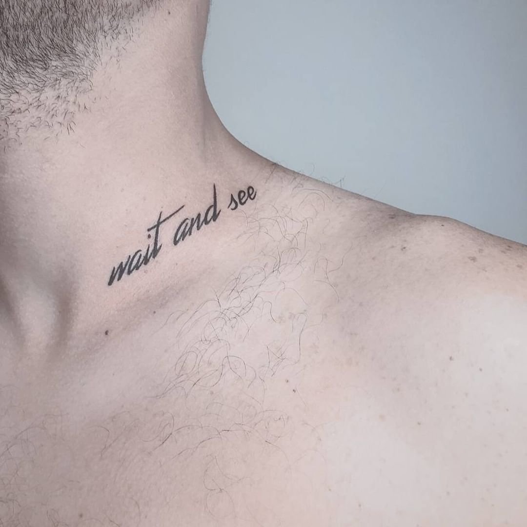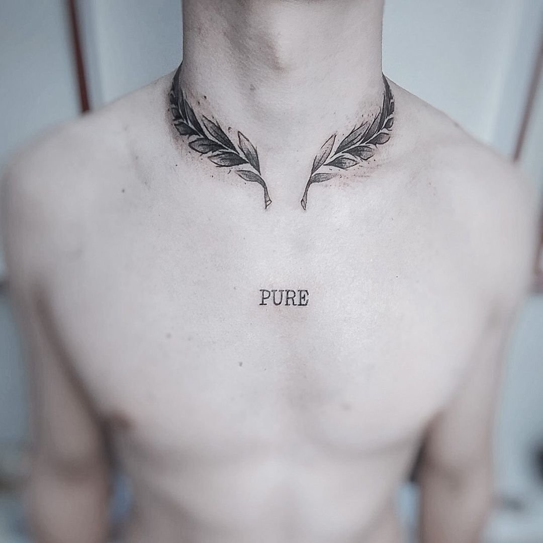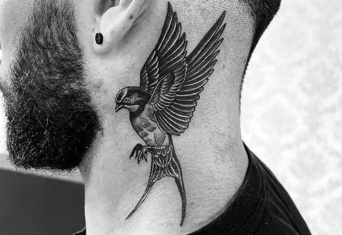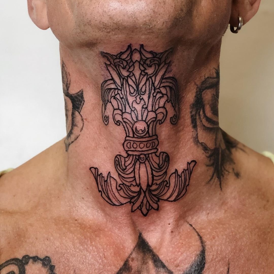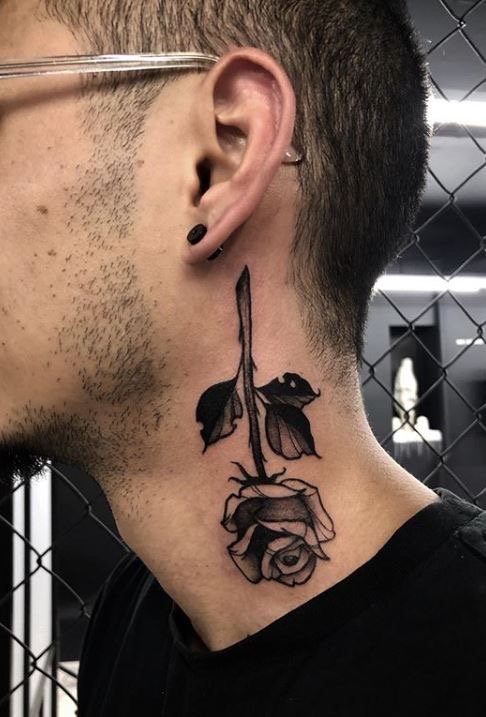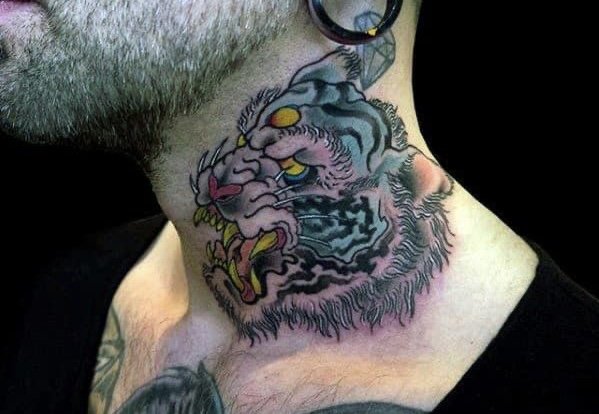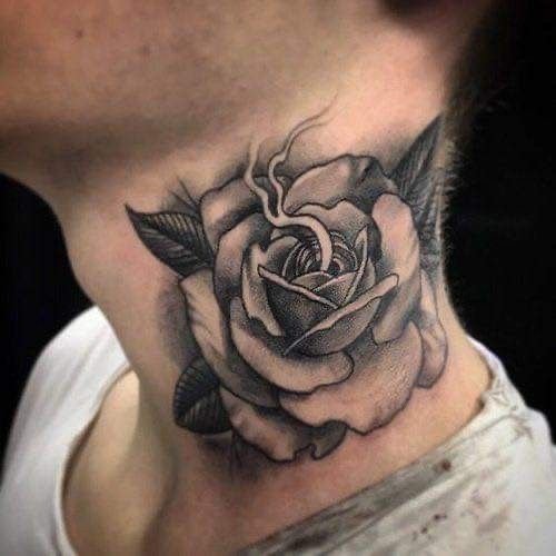 Малките татуировки на мъжката шия се срещат по-рядко от по-големите дизайни.
