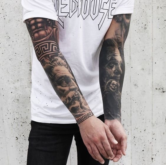 Най-популярните стилове за мъжки татуировки с ръкав са: