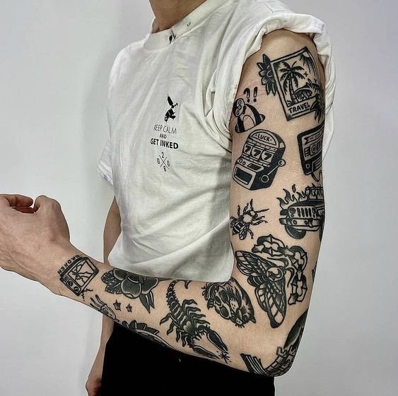 Големите татуировки, които покриват цялата ръка от рамото до дланта (или дори повече), обикновено се наричат татуировки "ръкав".
