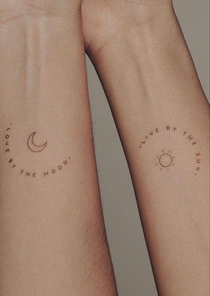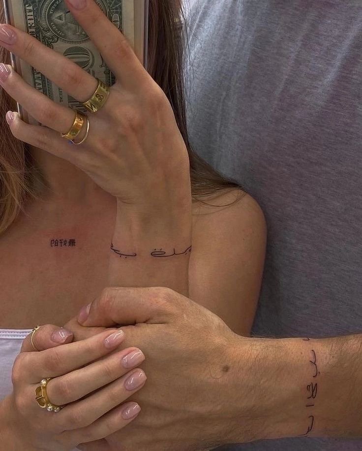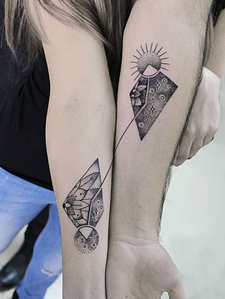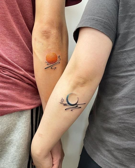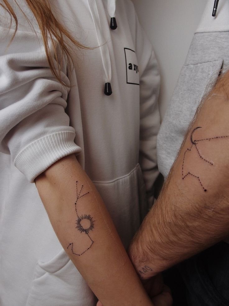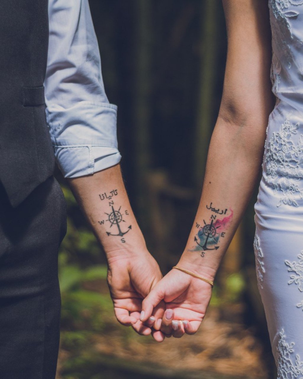 Важно: Майсторите не препоръчват татуиране на имена на любовници или дати, тъй като животът е непредсказуем и често изненадва. Може би двойката ще бъде разделена напред и татуировката ще остане неприятен спомен от брака. Когато избирате скица, по-добре е да изберете неутрални рисунки, които заедно носят дълбоко символично значение и поотделно могат да се възприемат като чиста, неутрална рисунка.