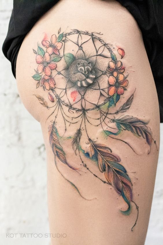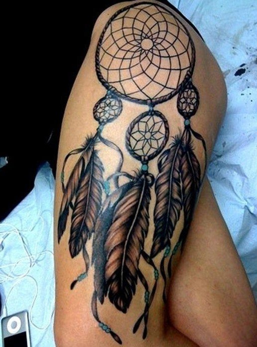 Мистичната татуировка с ловец на сънища представлява безопасност и сигурност.