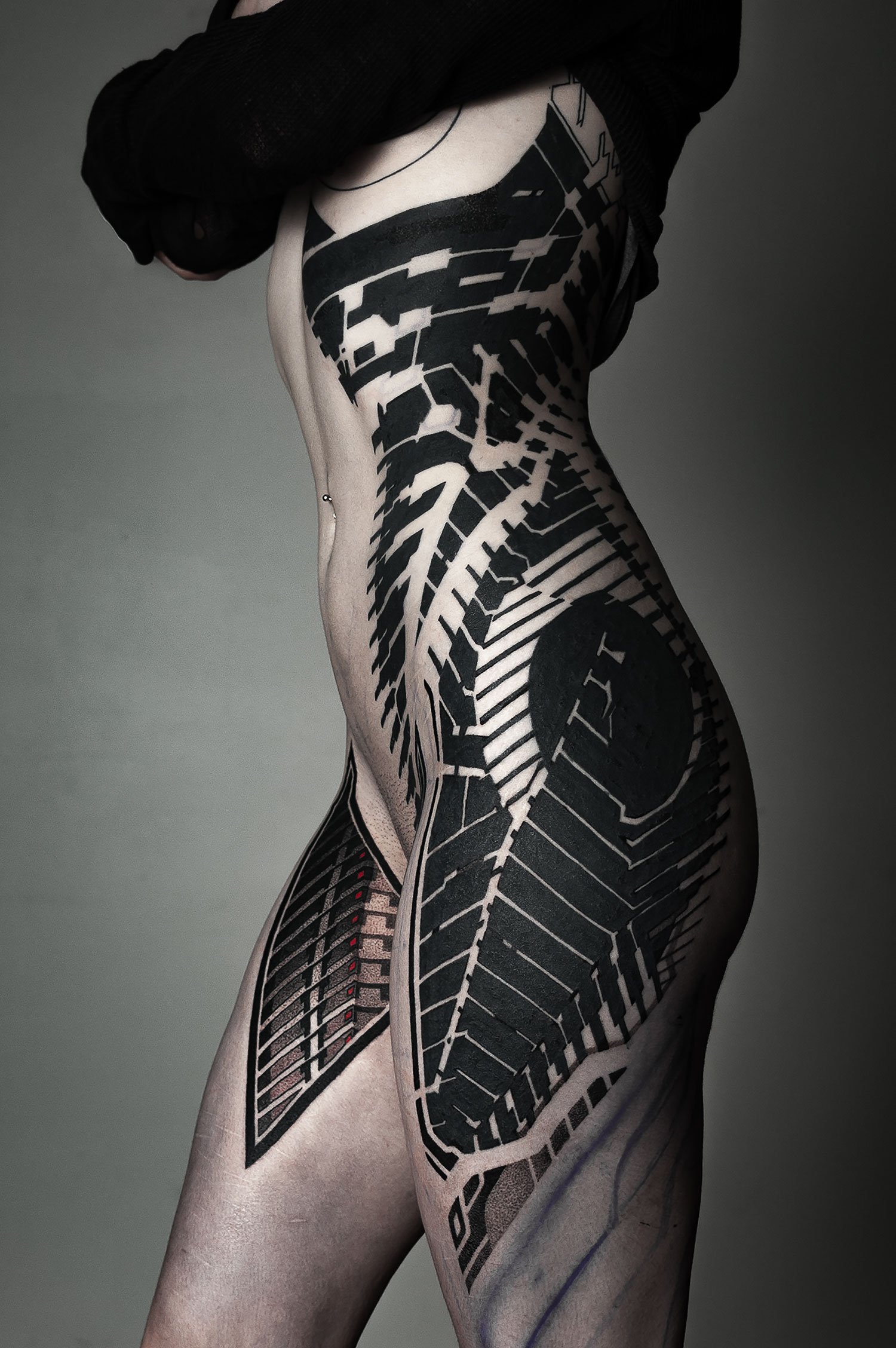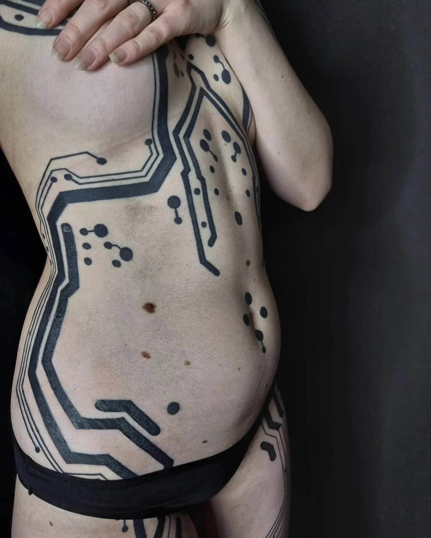 Киберпънк татуировките отразяват естетиката на популярния жанр на научната фантастика.