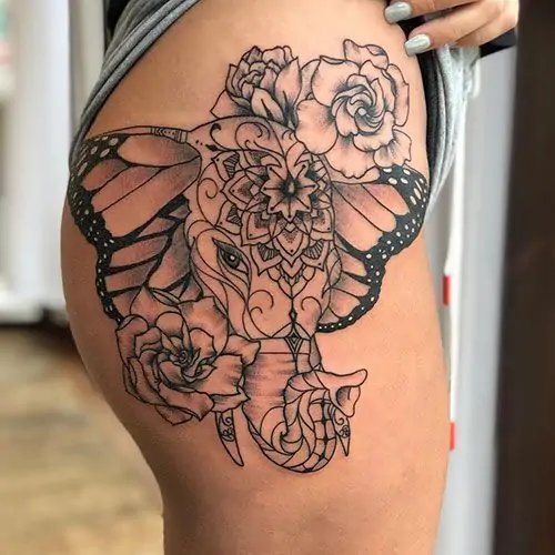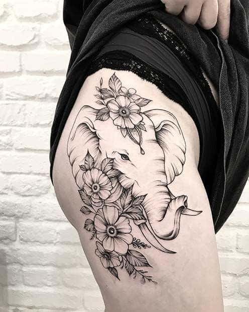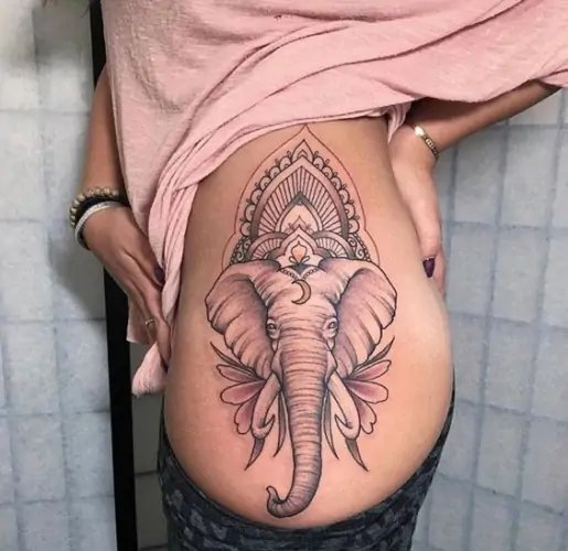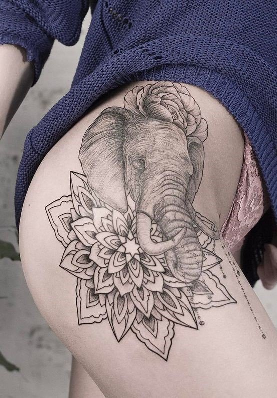 Някои уважават спокойствието на тези величествени животни. Други ще ги харесат заради тяхната дълбока мъдрост и сдържана сила. Реалистичният и детайлен слон ще стои идеално на бедрото. Но може да бъде и миниатюрен, изграден от тънки линии и минималистични форми.