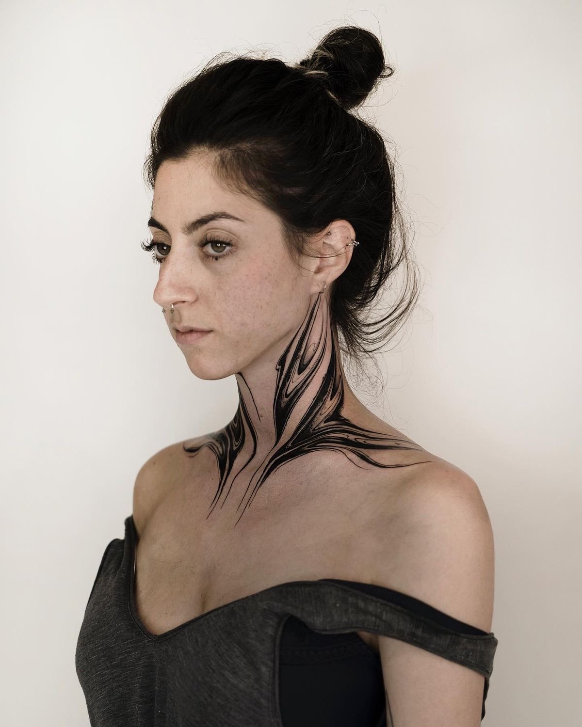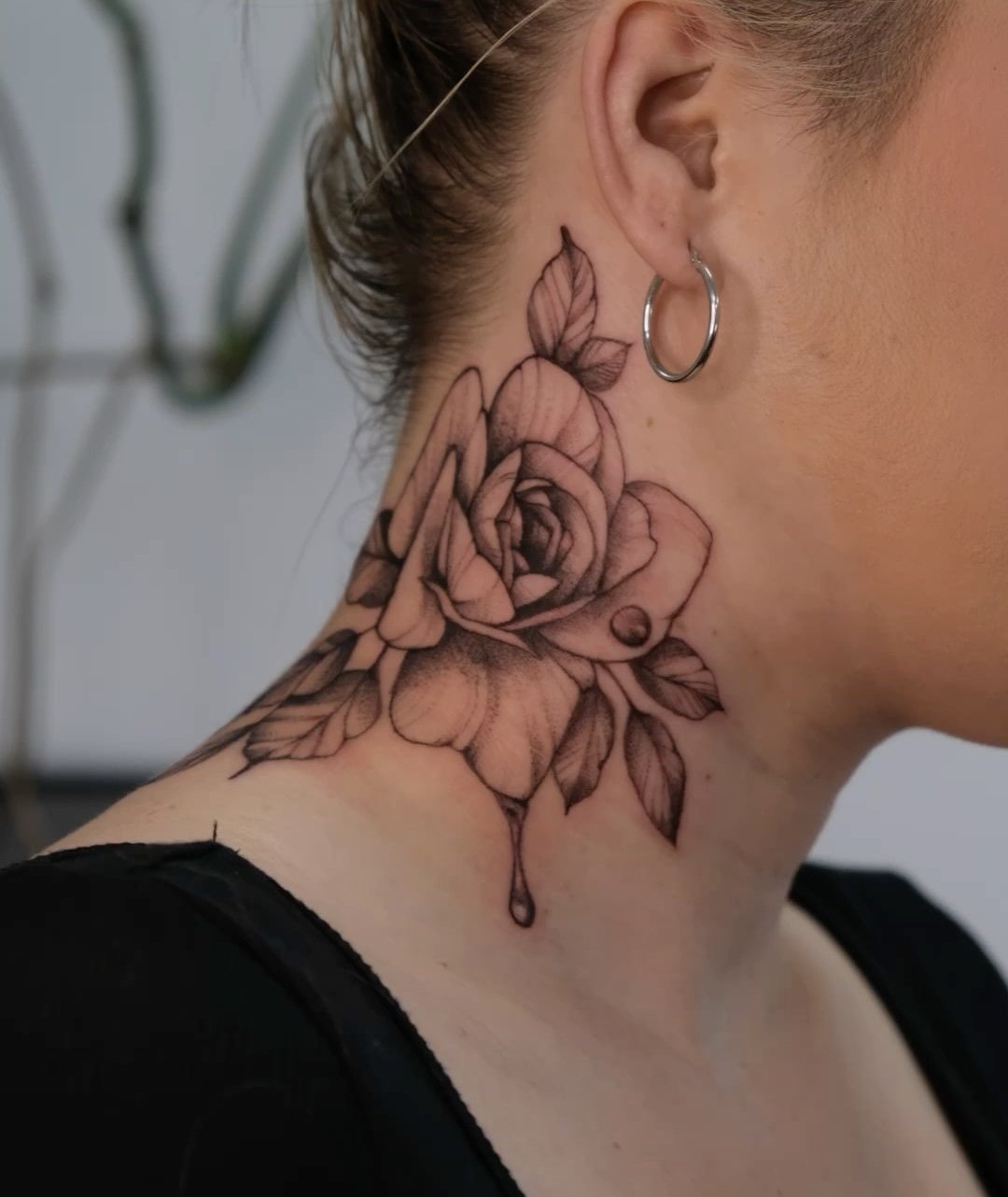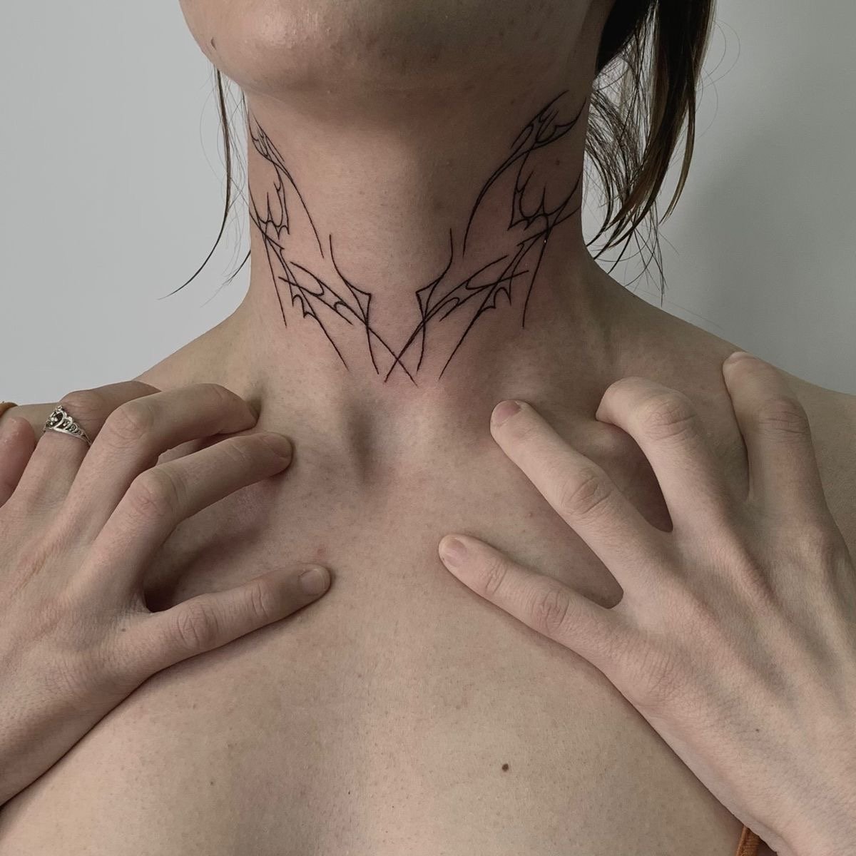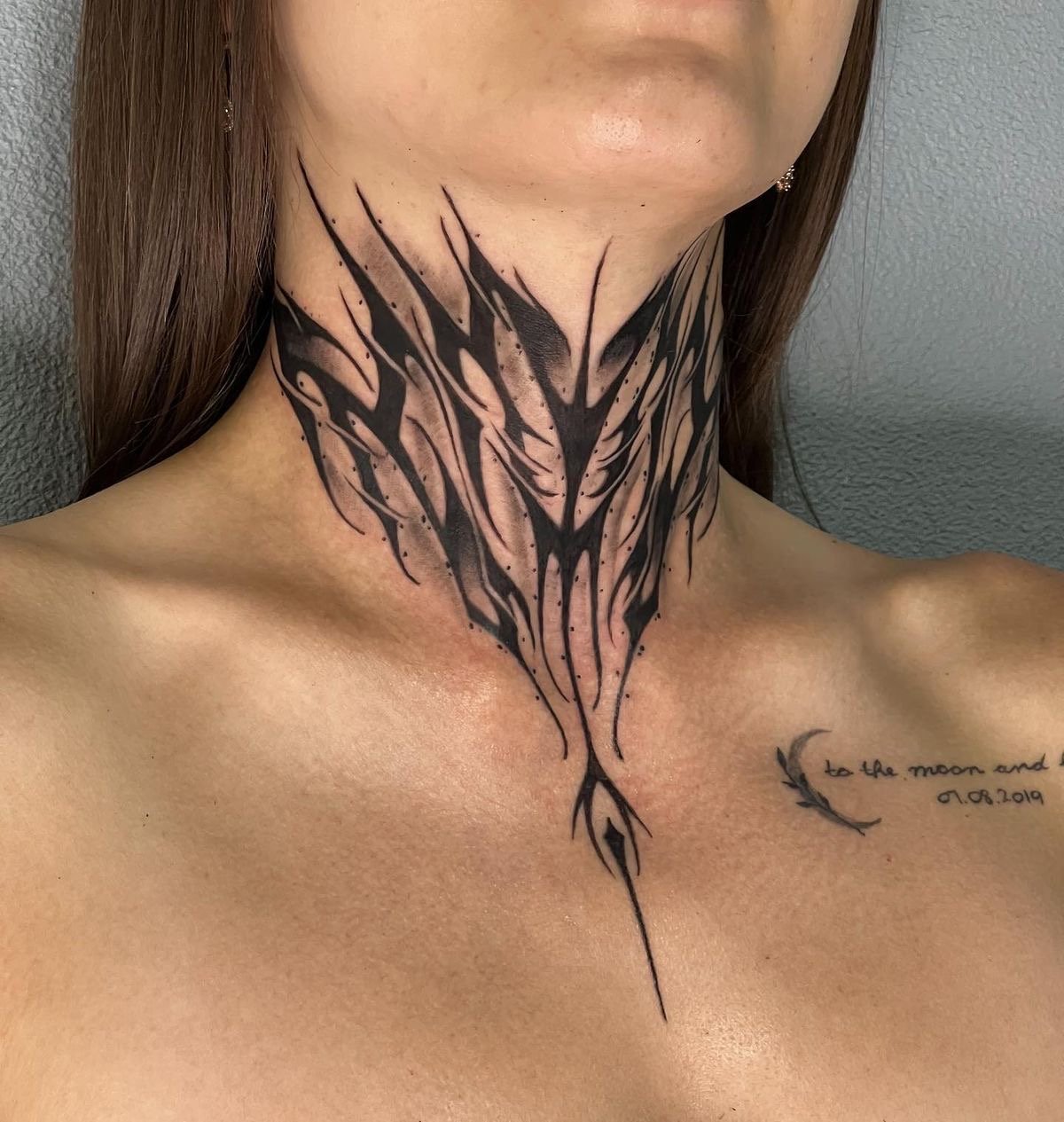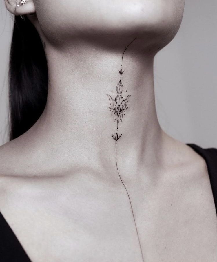 Например, минималистичните татуировки най-добре изглеждат на задната част на шията или зад ухото, докато по-големи композиции могат да бъдат разположени на страничната част на шията.